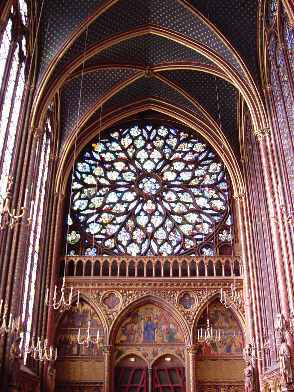 | The stained class windows in Sainte Chapelle were incredible. They depict biblical scenes from Genesis to the Apocalypse, the rose window pictured here. |