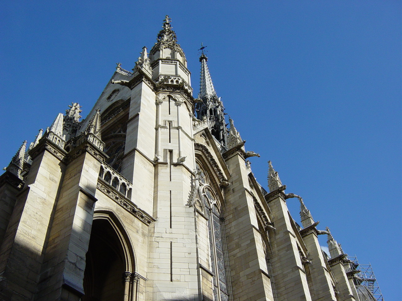 | Here's a photo of the front of Sainte Chapelle. Finished in 1248, the church is now in the center of the Justice Department in Paris. |