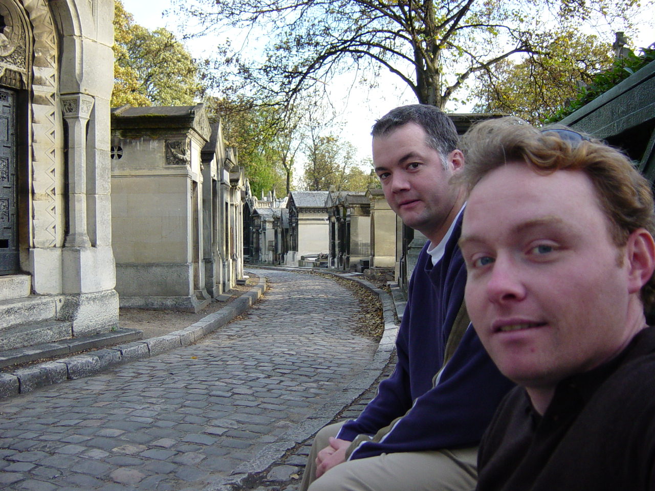 | Resting at Pere Lachaise. The cemetery is built on a hill and was quite a walk from site to site. |