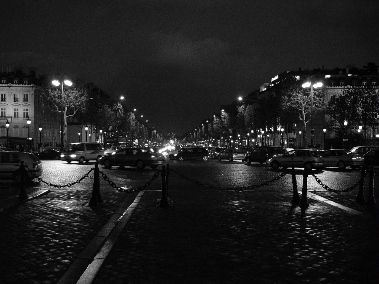 | 12 different streets meet at the Arc de Triomphe. Here's a black and white of the Champs Elysees from the Arc. |