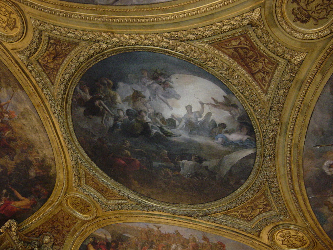 | Just like the Lourve, the ceilings in every room of the chateau had these elaborate paintings. Most were of Louis and his adventures. |