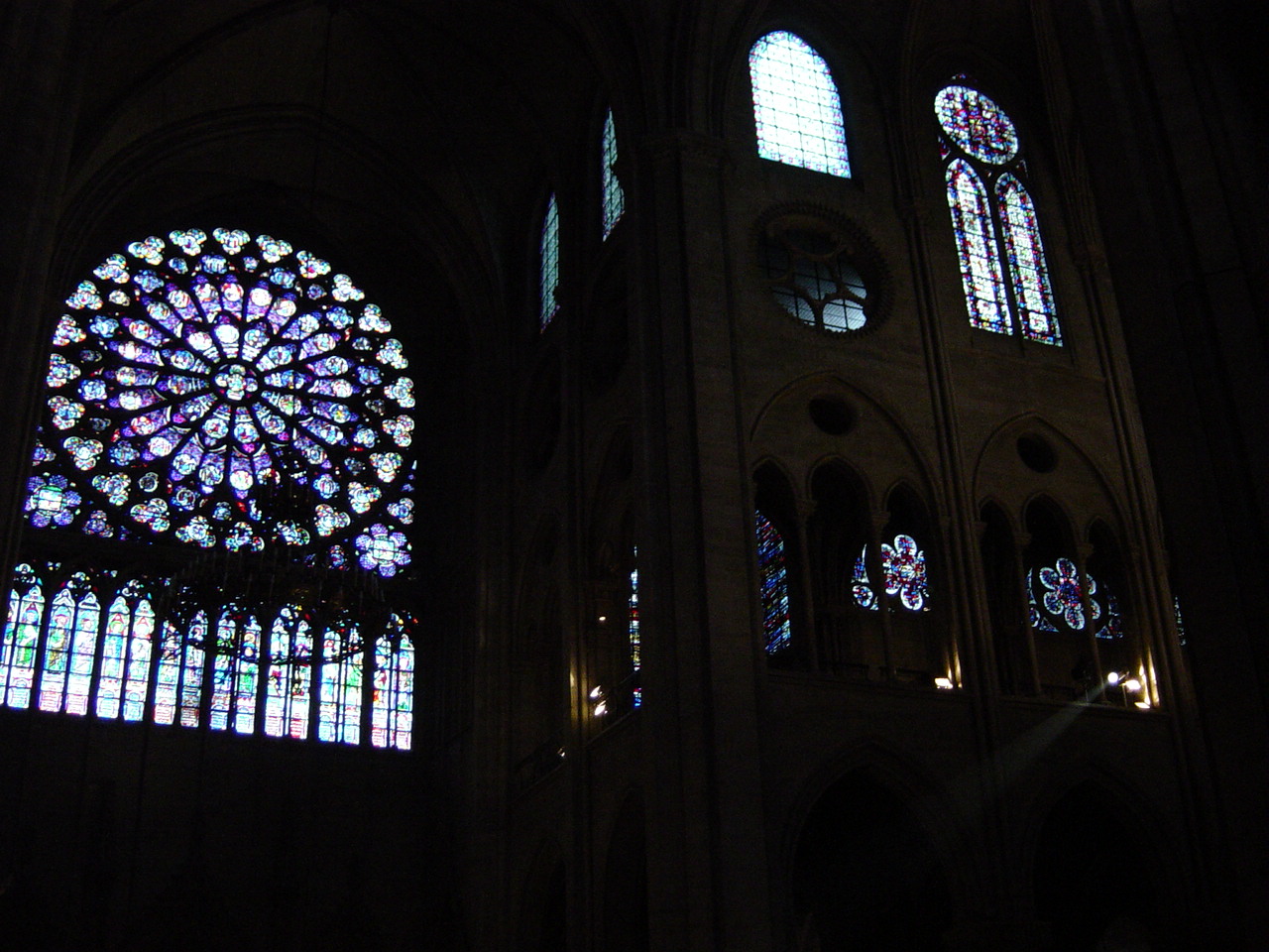 | Once we climbed down, we took a walk through the cathedral. Here's a photo of one of the rose windows and the glass that lines in interior of the cathedral. |