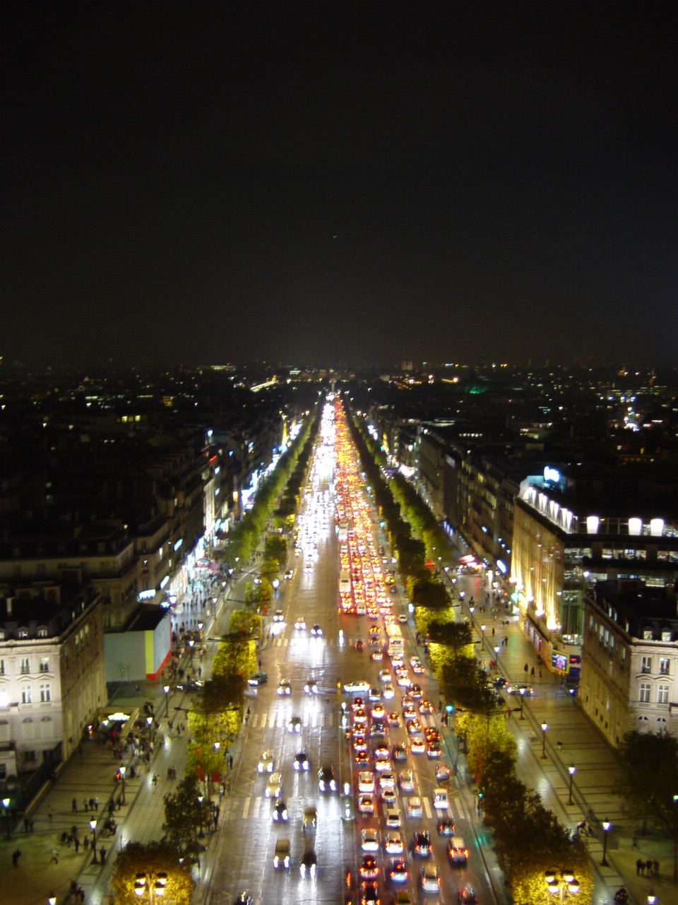 | What a final view of Paris. We left the Arc and walked down the Champs Elysees to the next Metro stop. Our hotel area was a quick 15 miute ride. We walked around the area to get some dinner and a few final Paris brews. We were leaving early the next morning for Charles De Gaulle and our new port of entry: Amsterdam! |